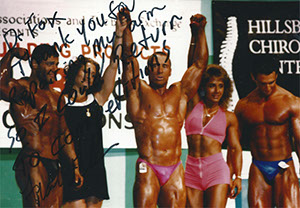 Body Builder Karen Santosuosso posing at the NPC National Figure Competition. This patient had Arthroscopic & Stem Cell knee surgery performed by Dr. Fox. |